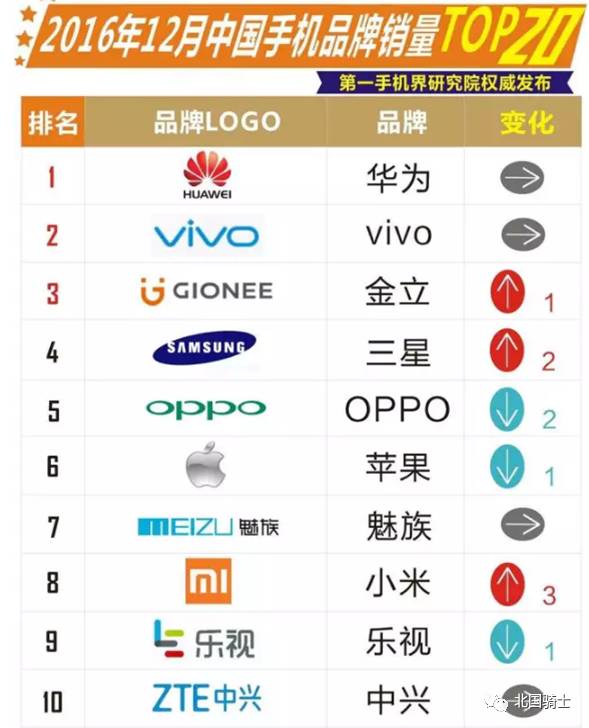 我们也可以看一下数据,第一手机界研究院刚刚发布的数据显示,2016年第四季度最受欢迎的手机品牌是华为、vivo、金立、三星、OPPO,而华为仅仅2016年第四季度,华为智能手机销量就达到了3360万,直追苹果 iPhone 。而金立在崛起,预示着2017年的智能手机格局又会发生巨变。